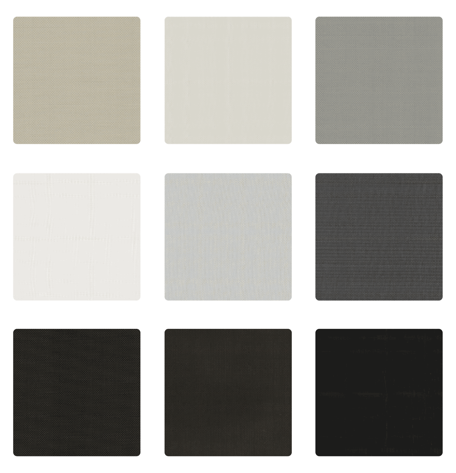 Ambos tejidos se pueden manipular de forma independiente, lo que garantiza un control total sobre el ambiente de la habitación o espacio. Esta opción proporciona control térmico. Proporciona aproximadamente entre un 95% a un 100% la protección UV.
