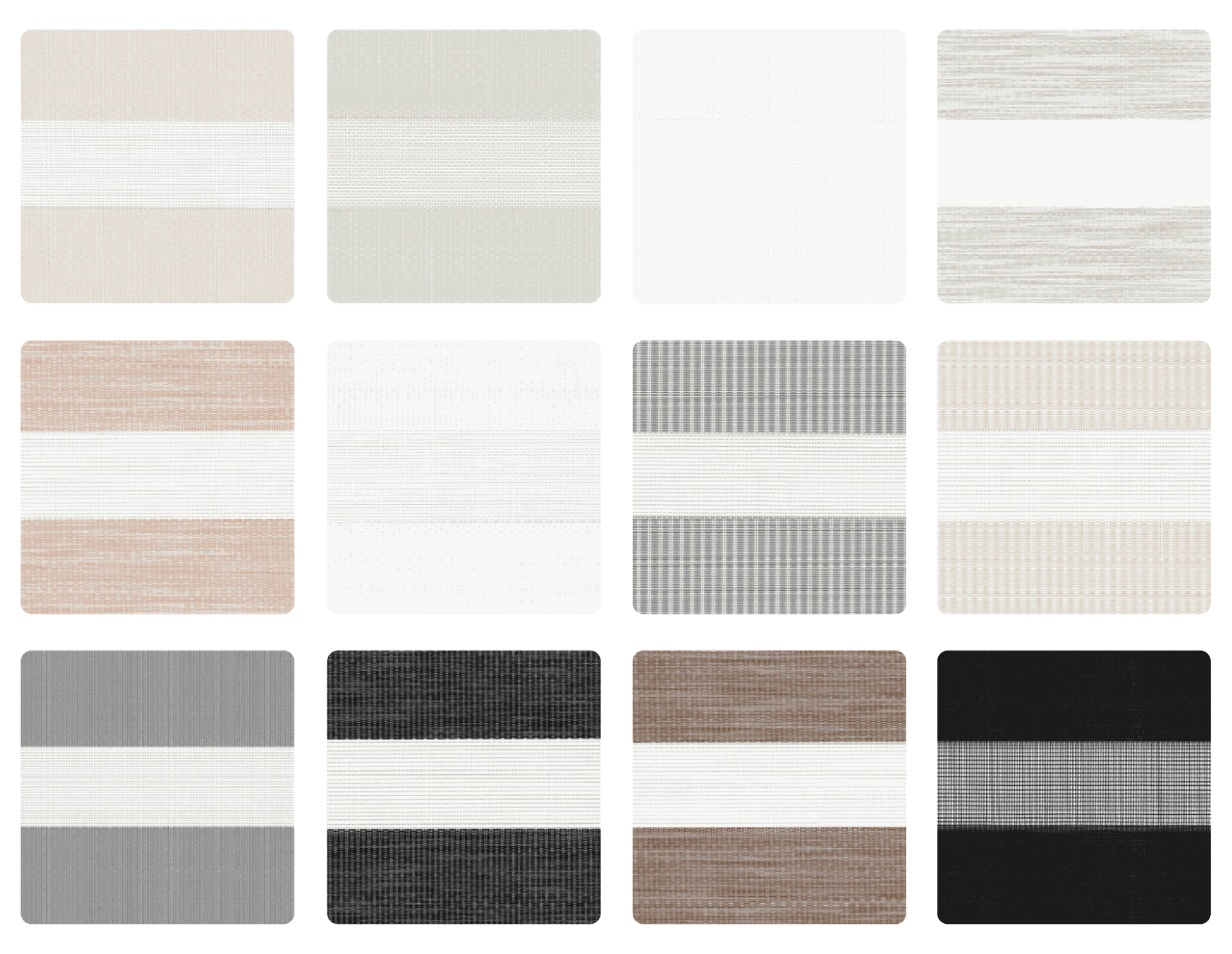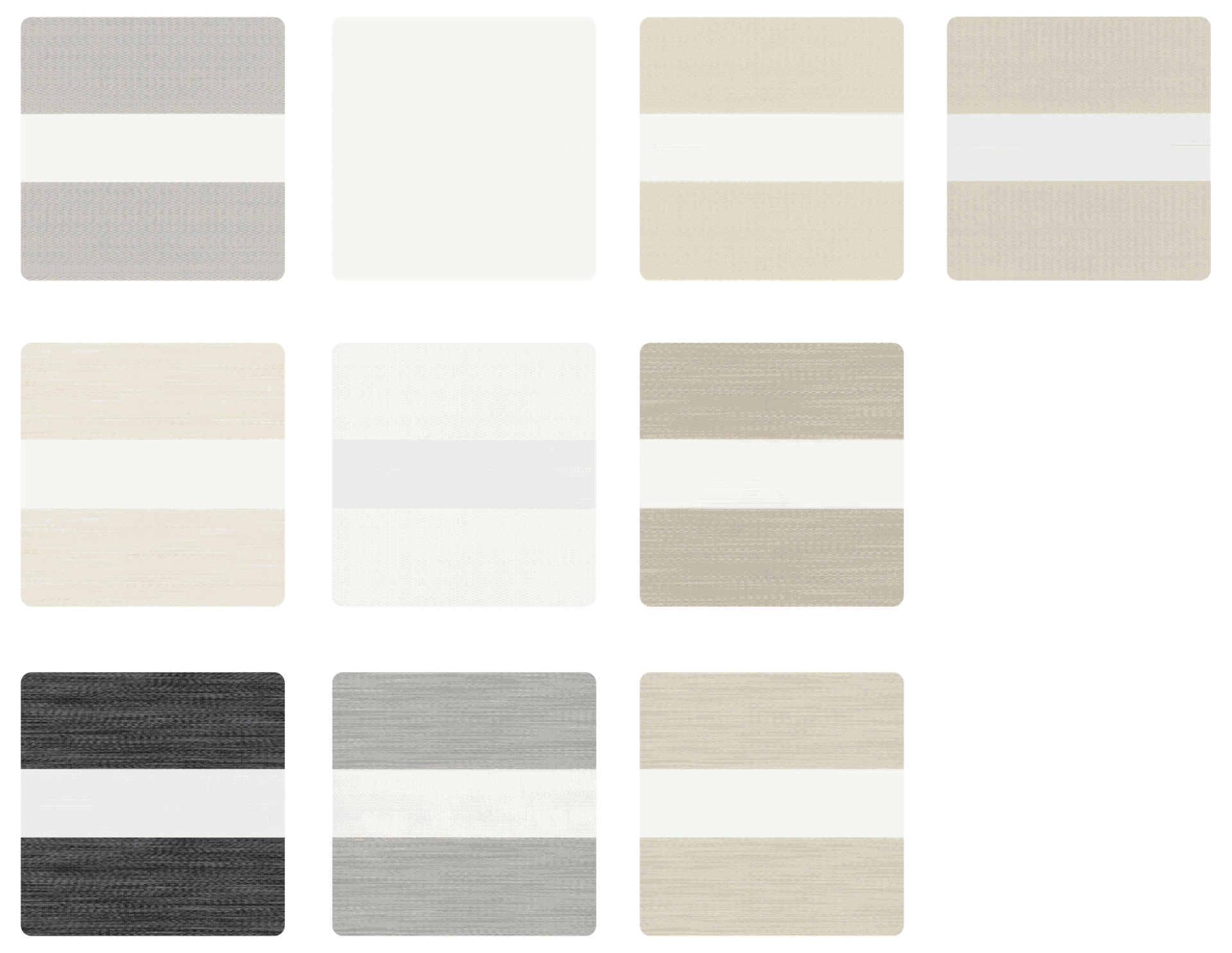 Ofrecen un diseño único de doble capa que permite organizar las tiras transparentes y opacas según se prefiera, filtrando la luz de forma gradual, ofreciendo mayor visibilidad del exterior durante el día y privacidad durante la noche. Ofrece aproximadamente desde un 80% hasta un 90% de protección UV, sujeta al tono del tejido.