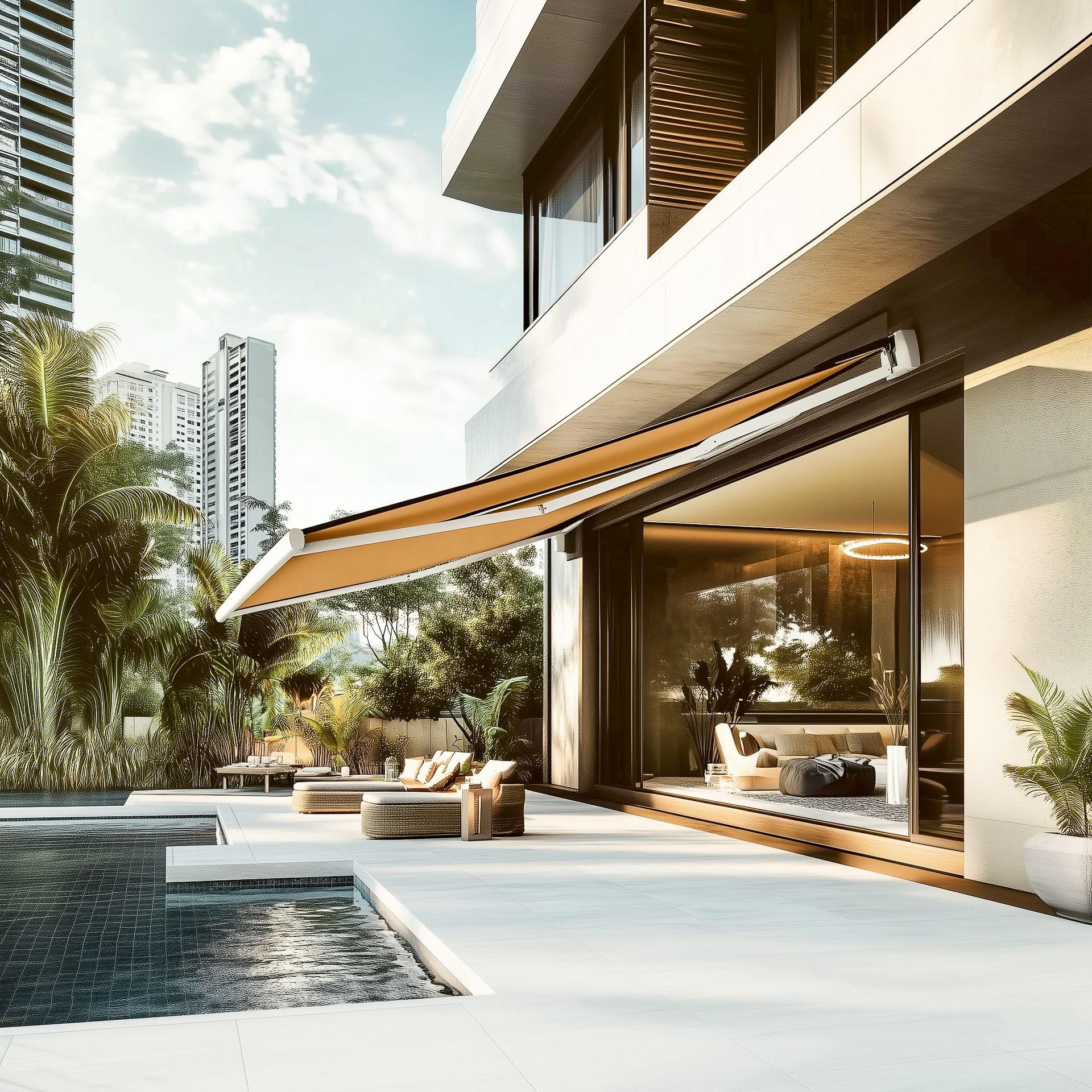 El toldo perfecto para exteriores con opción de tela Screen. Se integra de forma minimalista en